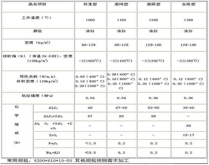 產(chǎn)品特點(diǎn)是低導(dǎo)熱率、低熱容量,優(yōu)良的熱穩(wěn)定性及抗熱震性,優(yōu)良的抗拉強(qiáng)度,優(yōu)良的隔熱、防火、吸音性。適用范圍工業(yè)建材窯爐、加熱裝置、高溫管道壁襯,電力鍋爐、氣輪機(jī)及核電隔熱,化工工業(yè)高溫反應(yīng)設(shè)備及加熱設(shè)備的壁襯,高層建筑防火、隔熱,窯爐爐門、頂蓋隔熱,高溫過濾材質(zhì)。