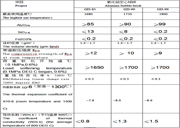 現(xiàn)在用耐高溫材料都屬于重質(zhì)磚體積密度為2.6-3.0g/cm,而氧化鋁空心球磚只有1.1~1.5g/cm,同樣一立方米體積 ,使用氧化鋁空心球磚可以減輕1.1-1.9噸重量。