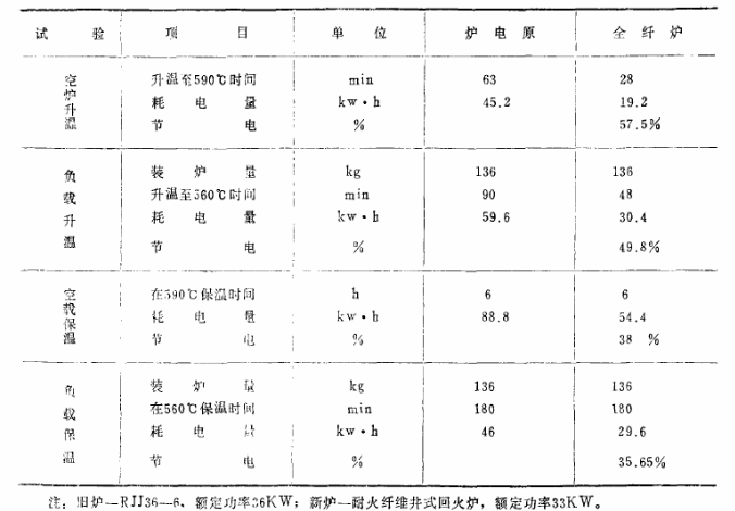 利用RJJ36-6型井式回火爐爐殼來制造纖維井式回火爐時,除儀表、電熱絲、耐火磚、金屬構(gòu)件等費(fèi)用外,僅用去硅酸鋁耐火纖維氈50kg、蛭石100kg,價約人民幣500元,按正常生產(chǎn),不用半年的節(jié)電費(fèi)用就可補(bǔ)償投資費(fèi)用。