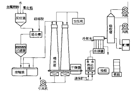 多晶莫來石耐火纖維生產工藝流程如圖1所示。