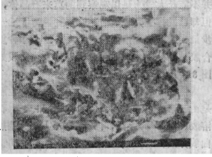 為了探討復合結合劑在莫來石結合剛玉磚中所起的作用,我們對1#試樣1500℃×3h燒后和1000℃×3h燒后的樣塊作了電鏡分析,其圖像如圖1和圖2所示;
