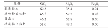 表1 原料的化學組成/%