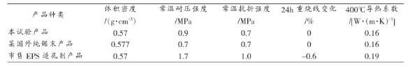表3 產品相關物理性能比較